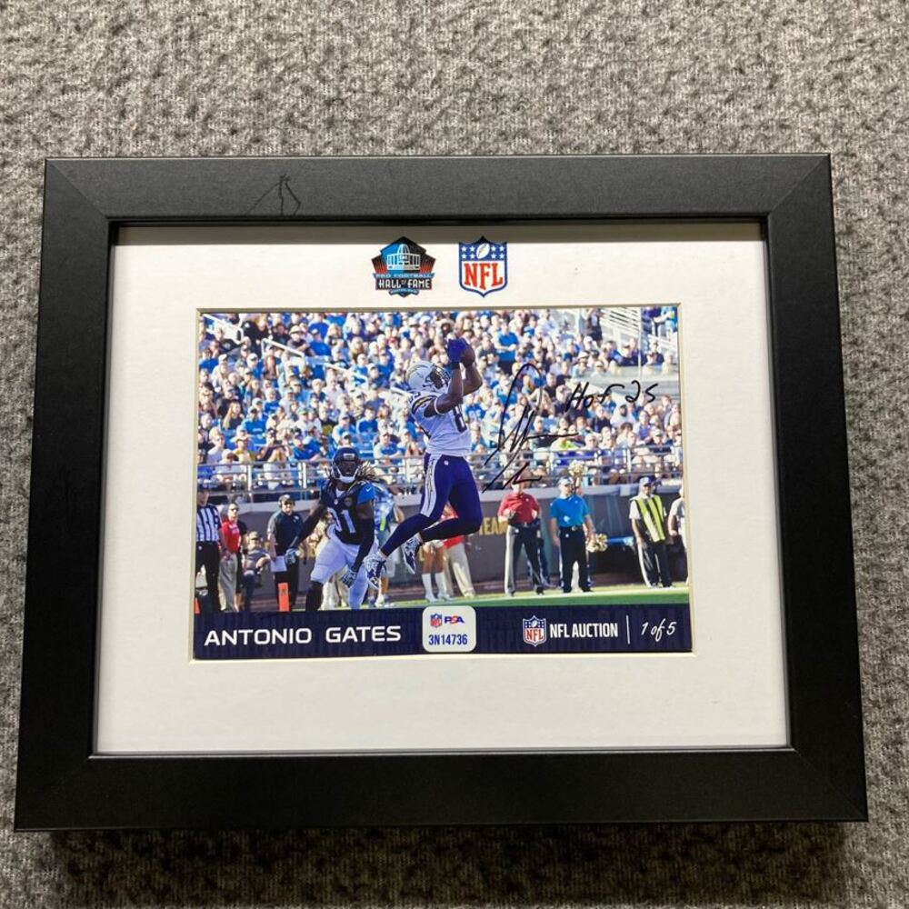 HOF - Chargers Antonio Gates NFL Auction Exclusive Signed 5x7 Framed Photo Individually Numbered 1 of 5 HOF 25 Inscription